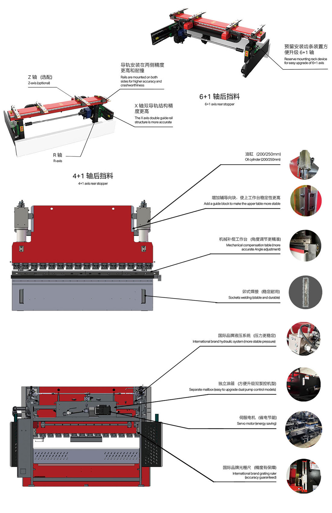 标配轴数: Y1、Y2、X、R、A1、A2、V2D、3D图形显示,手动模拟折弯程序。